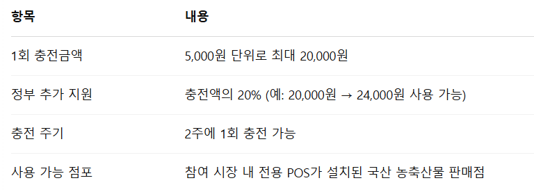 ● 국산 농축산물 구매에만 사용 가능 (공산품·수입품 사용 불가)