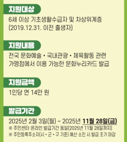 문화누리카드 지원 대상과 사용 기간