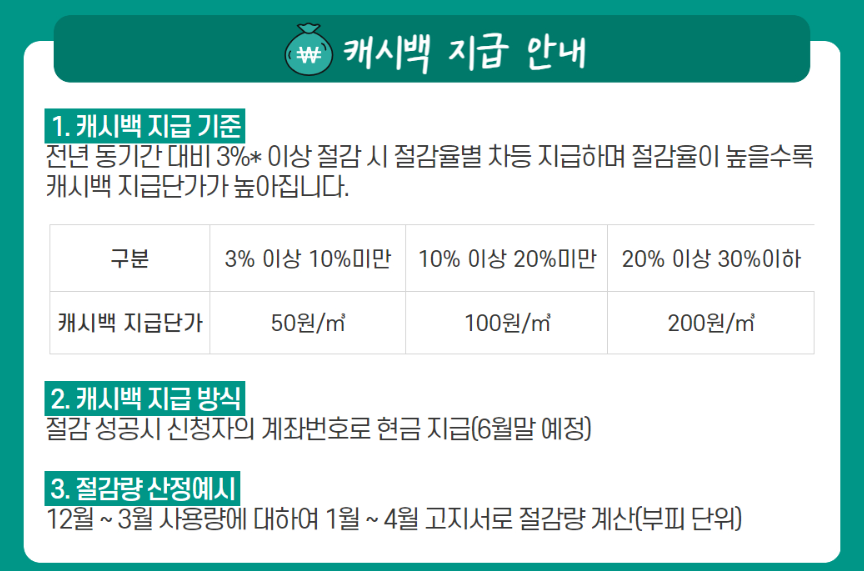 ● 지급 기준: 전년 동기간 대비 3% 이상 절감 시 캐시백 지급
