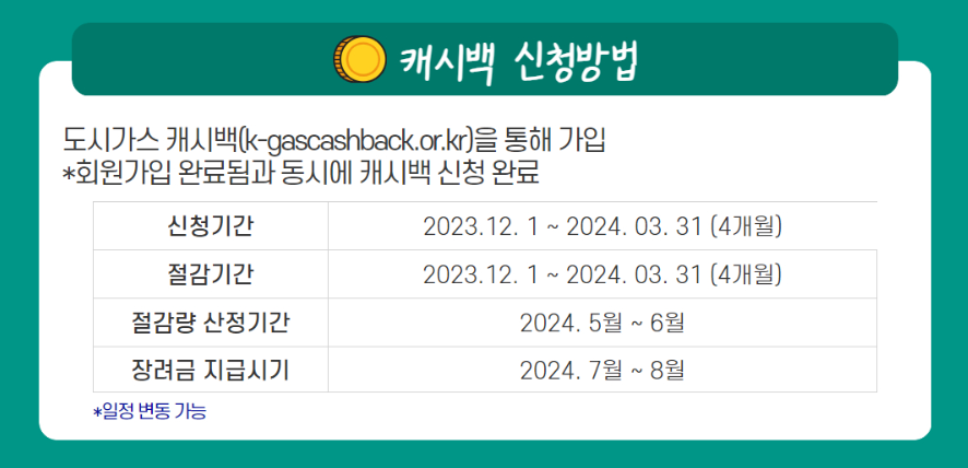 ● 절감 기준 기간: 전년도 12월부터 다음 해 3월까지의 도시가스 사용량 기준