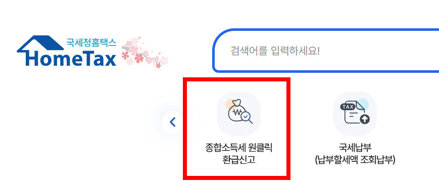 2. 메뉴 선택 → 원클릭 환급 신고 클릭